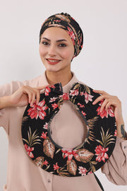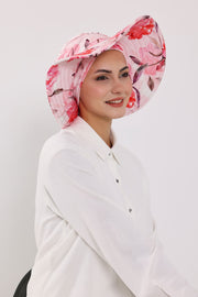 Printed Modest Sun Protective Turban Bonnet with Removable Bow Brim for Women, 2-in-1 Hijab Hat with Removable Brim with Patterns,S-4YD