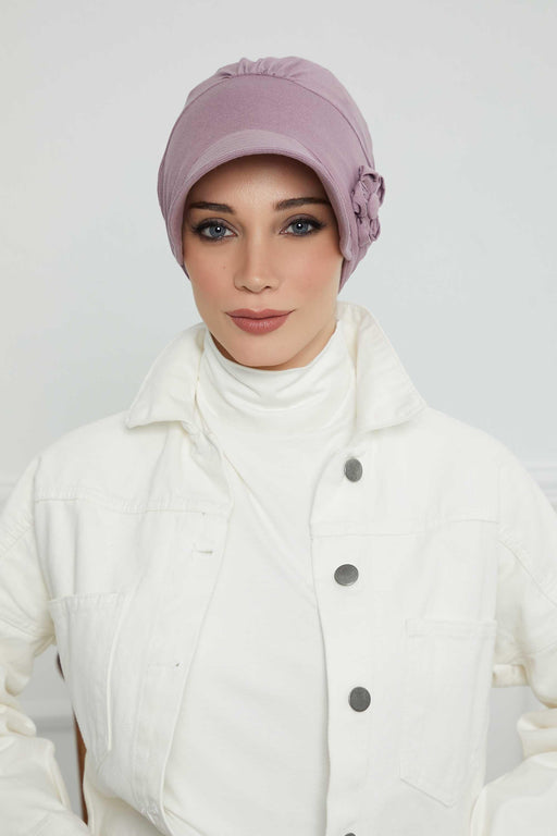 Pre-Tied Modest Turban for Women, Soft Aerobin Fabric Hijab with Stylish Back Flower, Slip-On Cotton Blend Head Cover,HT-92