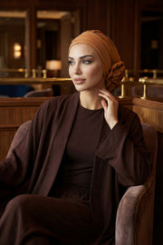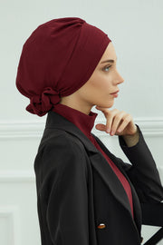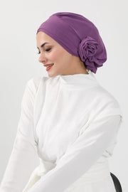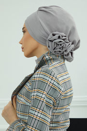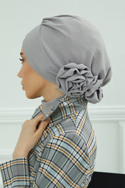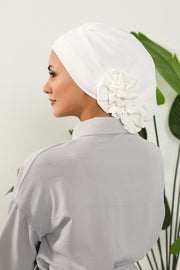 The standout feature is the elegant flower detail at the back—subtle yet eye-catching, it adds a stylish twist to a classic silhouette. Whether you’re looking for a quick slip-on head cover, a modest fashion turban, or a comfortable hijab alternative, this piece offers both beauty and practicality. It's especially loved by women who want a soft, no-fuss headwrap that stays securely in place all day long.