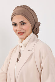 Pre-Tied Modest Turban for Women, Soft Aerobin Fabric Hijab with Stylish Back Flower, Slip-On Cotton Blend Head Cover,HT-92