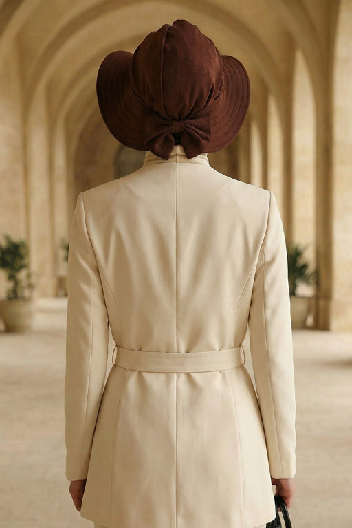Modest Sun Protective Turban Bonnet with Removable Bow Brim for Women, 2-in-1 Hijab Hat with Removable Brim,S-4