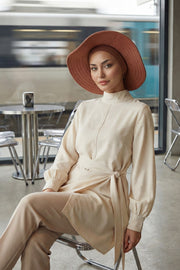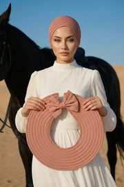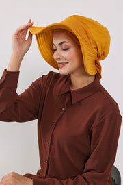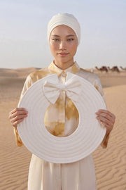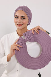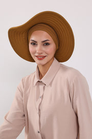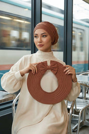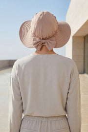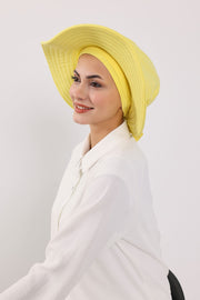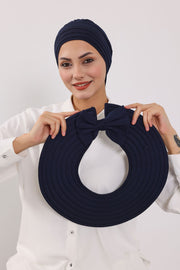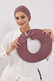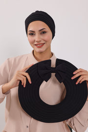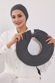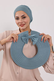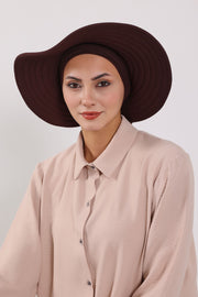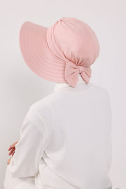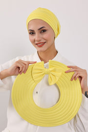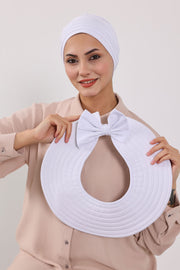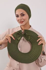 Modest Sun Protective Turban Bonnet with Removable Bow Brim for Women, 2-in-1 Hijab Hat with Removable Brim,S-4