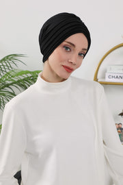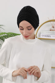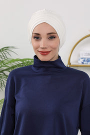 Shirred Elegance Turban for Women for All Seasons, Ready to Wear Stretchy Headwrap for Women, Breathable One Size Modest Hijab Cap for Everyday and Special Occasions,B-13O